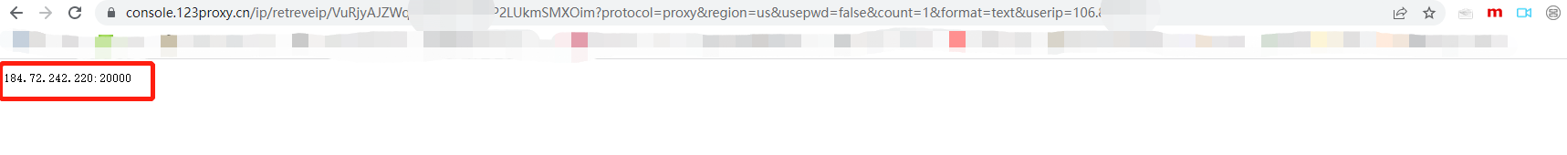 不同于动态代理,静态独享IP代理必须要首先提取具体代理IP信息,然后才能设置使用,123Proxy会对每个套餐生成一个唯一的URL链接,用户通过在浏览器打开该URL链接获取代理IP列表。 如: